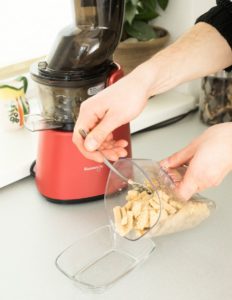Dzięki wolnoobrotowej wyciskarce Kuvings D9900 wyposażonej w przystawkę do lodów z łatwością wykonasz smaczne i zdrowe masło orzechowe w domu. Najlepiej użyj do tego celu orzechów arachidowych w łupinach, poświęcisz trochę czasu na obieranie, jednak są one bardziej świeże niż te sprzedawane w opakowaniach no i możesz mieć pewność, że nie były wcześniej niczym nasączane ani solone.
