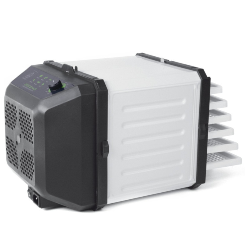 Dehydrator jest to rodzaj suszarki do żywności o wysokiej wydajności. W dehydratorach ciepłe powietrze rozprowadzane jest poziomo do przodu. Wentylator, który generuje ciepło umieszczony jest na w tylnej ściance. Zastosowanie takiego rozwiązania powoduje, że proces suszenia przebiega szybciej i bardziej równomiernie. W tradycyjnych suszarkach wentylator umieszczony jest na górze lub na dole, przez co elementy umieszczone bliżej źródła ciepła są często przesuszone w stosunku do tych, które są daleko od wentylatora. Dehydrator rozprowadza ciepło równomiernie, przez co uzyskujemy dużo lepszą jakość naszego pożywienia w tym samym czasie.