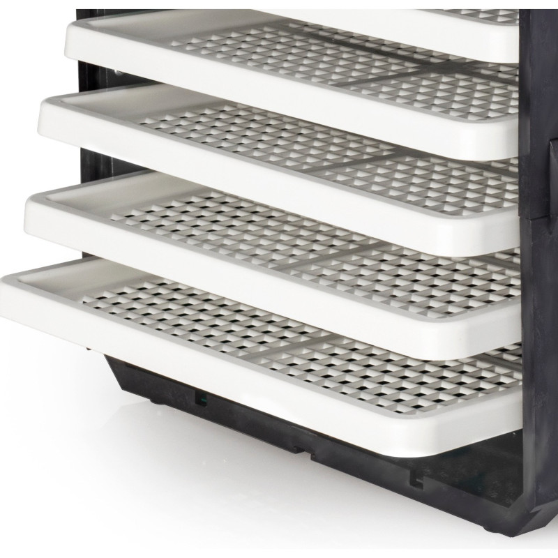 Sprzęt jest bardzo prosty w obsłudze, posiada aż 6 tacek z bezpiecznego, spożywczego tworzywa ABS. Manualny termostat ułatwi odpowiednie dostosowanie temperatury.