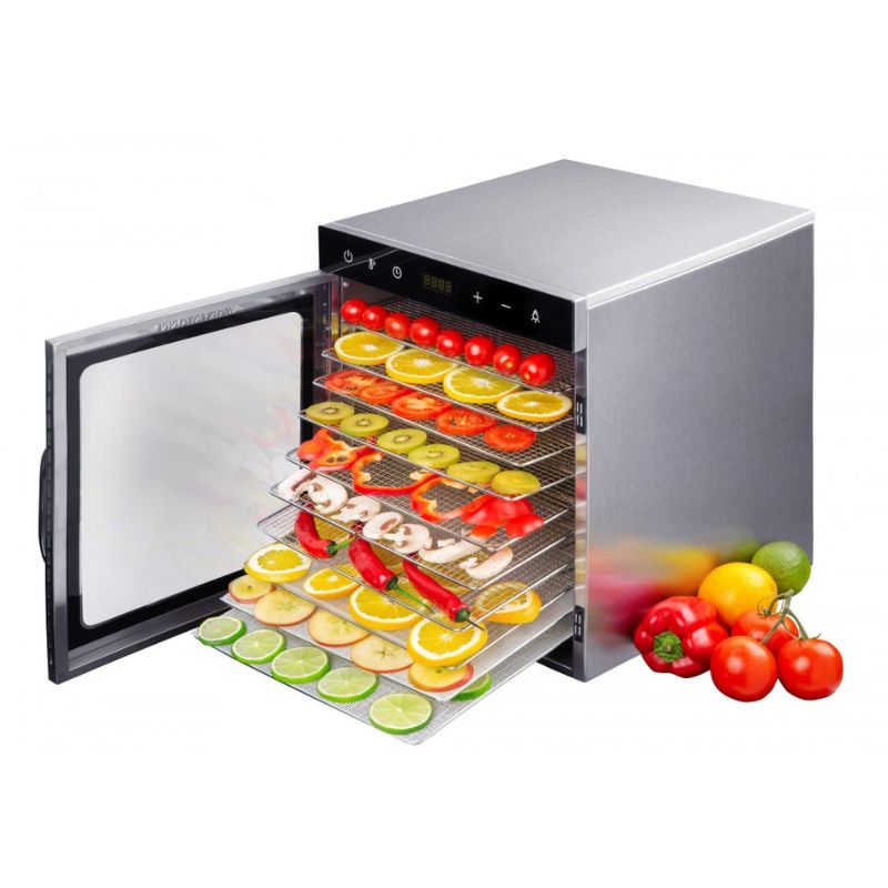 Suszarka do żywności jest w całości wykonana z wysokiej jakości stali nierdzewnej,