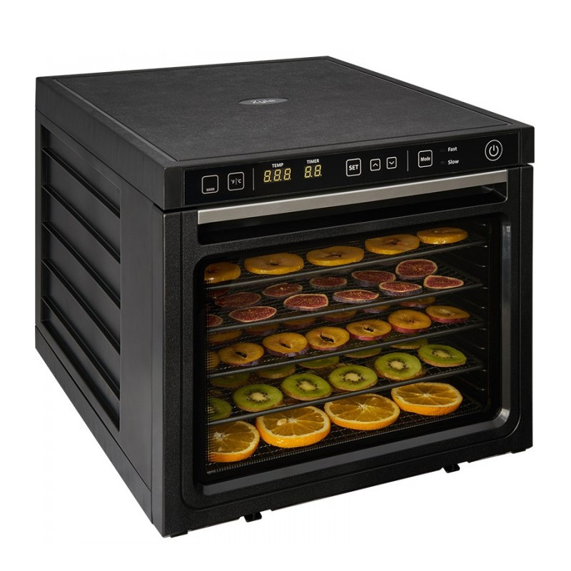 Dehydrator Zyle posiada dwa oddzielne wentylatory i elementy grzewcze o łącznej mocy nawet do 1000W! Dzięki temu suszenie żywności przebiega jeszcze szybciej, a temperatura rozkłada się jeszcze równomierniej.