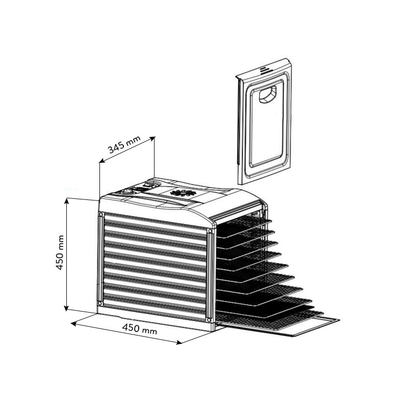 Dehydrator posiada, aż 1,3 m2 powierzchnia suszenia, pomieści nawet 5 kg żywności. Tace zostały wykonane z wysokiej jakości stali nierdzewnej, można je myć w zmywarce.