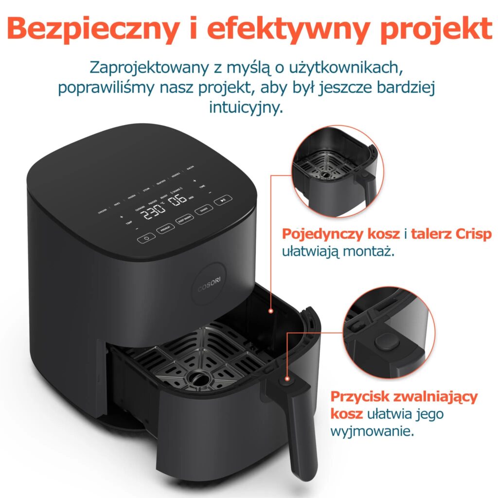 Frytkownica beztłuszczowa Cosori Pro LE 4,7L czarna wyposażona jest w wiele funkcji ułatwiających codziennie korzystanie z urządzenia.