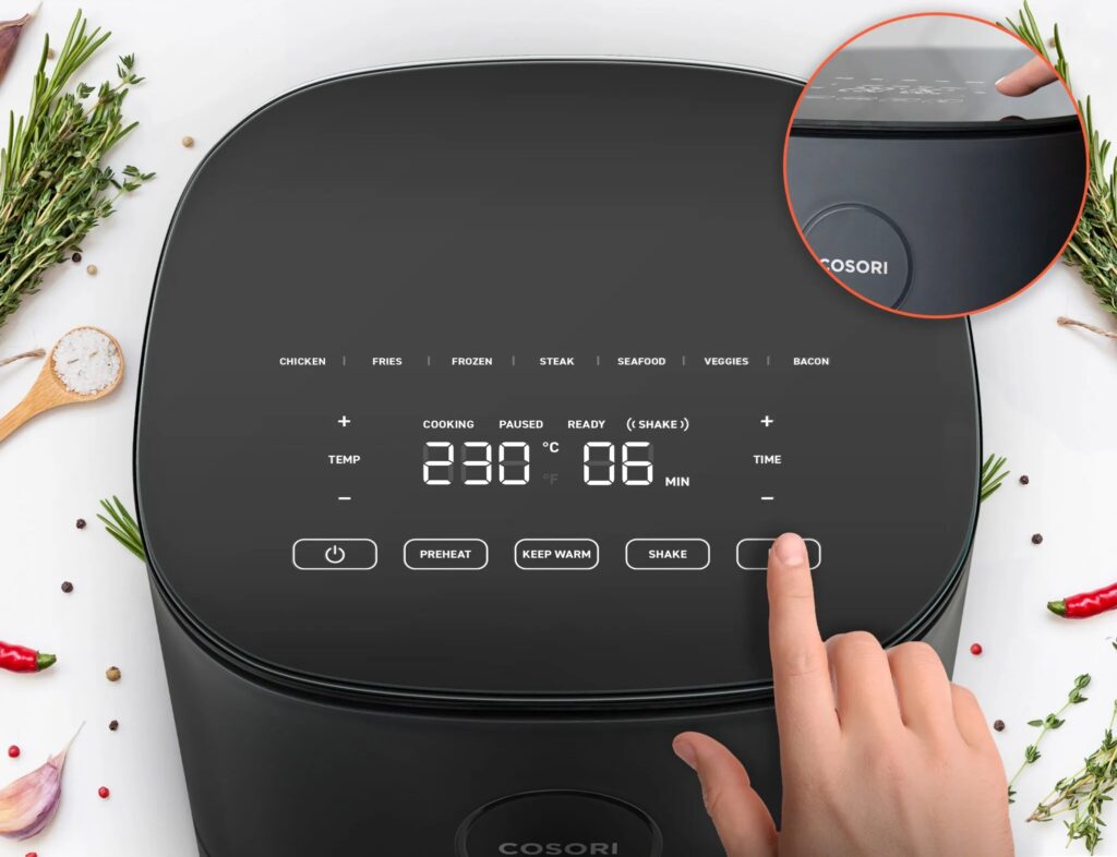 Frytkownica Cosori Pro LE wyposażona jest w intuicyjny panel dotykowy ze szkła hartowanego, który umożliwia łatwe sterowanie czasem i temperaturą. Możesz dostosować ustawienia do swoich preferencji i rodzaju przygotowywanych potraw.