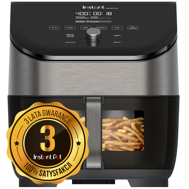 Frytkownica Instant Vortex Plus jest niezwykle wszechstronna w użyciu. Może posłużyć nie tylko do przygotowania frytek czy chrupiących skrzydełek z kurczaka, ale także do pieczenia, opiekania, podgrzewania lub suszenia rożnego rodzaju potraw.