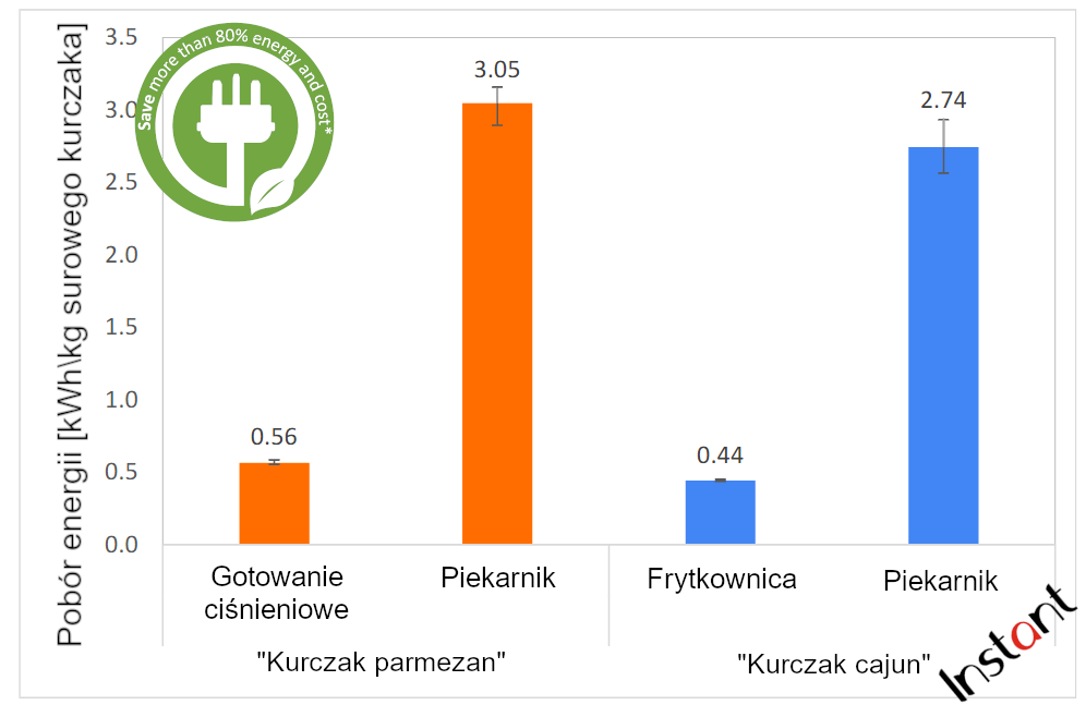 Zużycie prądu może być aż o 80% mniejsze niż w tradycyjnego piekarnika. Dodatkowo wytworzenie CO2 będzie ok. 5,5 razy mniejsze. Oszczędzasz nie tylko pieniądze, ale również dbasz o środowisko.