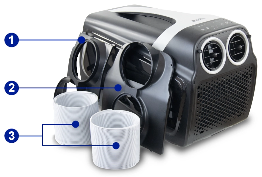 Zaprojektowany z myślą o użytkownikach, którzy cenią mobilność, wydajność i niezawodność, ten kompaktowy klimatyzator doskonale sprawdza się w kamperach, przyczepach campingowych i namiotach. Dzięki adapterom do obiegu powietrza – przedniemu (zimne) i tylnemu (gorące) – urządzenie zapewnia efektywne chłodzenie i maksymalny komfort termiczny w każdych warunkach.