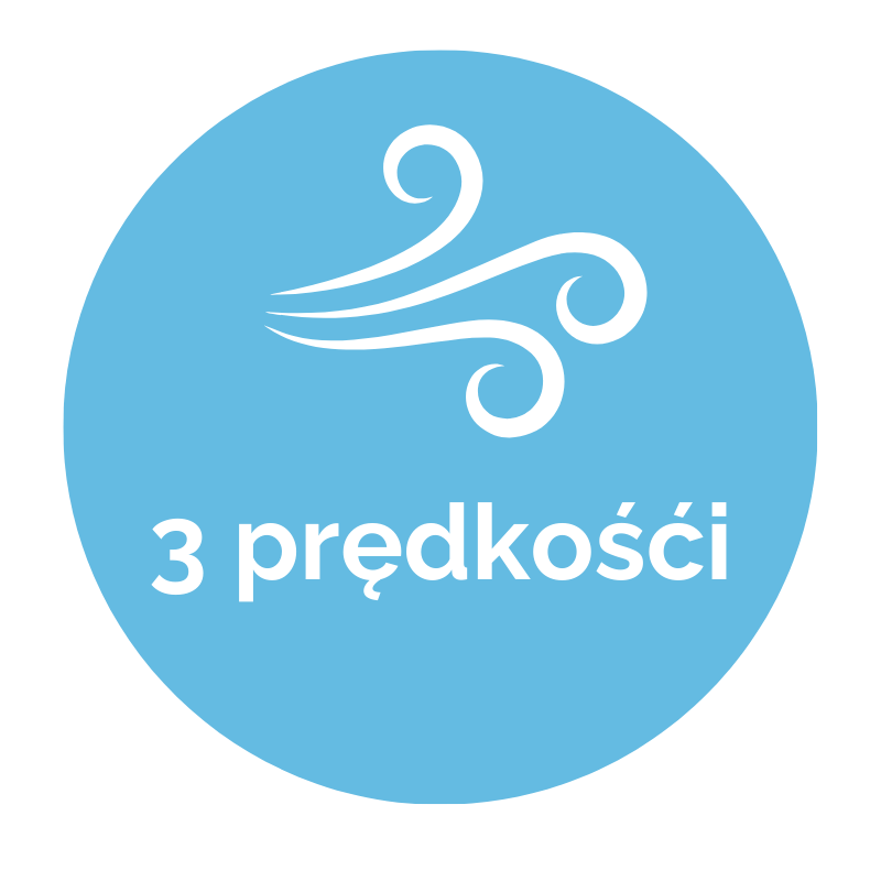 Przepływ powietrza na poziomie 480 m³/h pozwala na szybkie schłodzenie i oczyszczenie powietrza w pomieszczeniu.