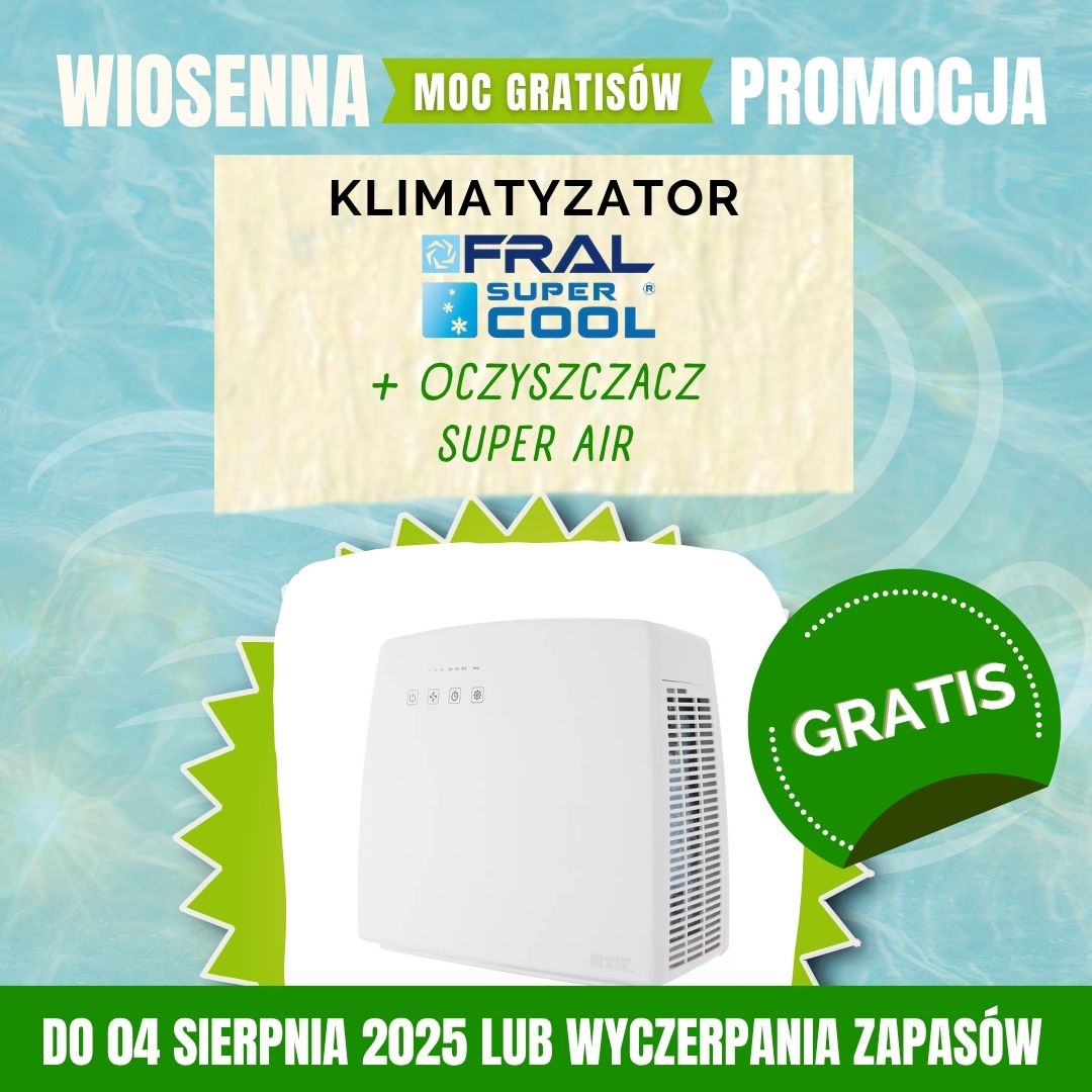 FRAL Super Cool FSC14.2 został wyposażony w skuteczny system filtracji powietrza, który dba o Twoje zdrowie i komfort. W standardowym zestawie znajdują się dwa filtry powietrza, które wyłapują kurz, pyłki, drobne zanieczyszczenia oraz inne cząstki unoszące się w powietrzu. Filtry te pomagają utrzymać czyste powietrze w pomieszczeniu, co jest szczególnie ważne dla alergików, dzieci i osób o wrażliwych drogach oddechowych.