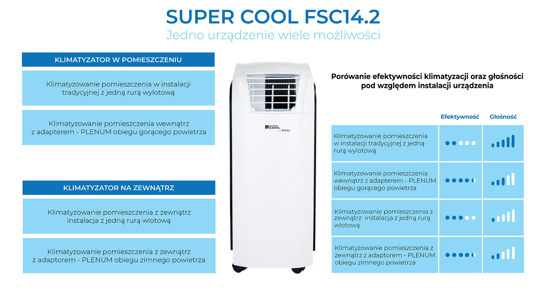 Podsumowując: Klimatyzator FRAL Super Cool FSC14.2 gwarantuje skuteczne chłodzenie, ogrzewanie i osuszanie powietrza, jednocześnie zachowując bardzo niski poziom hałasu, dzięki czemu zapewnia komfort i ciszę każdego dnia