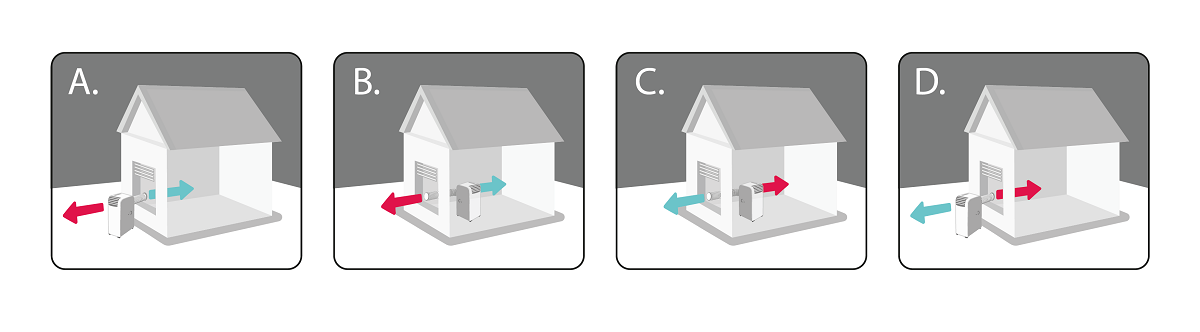 • A – umieść urządzenie na zewnątrz, aby cieszyć się chłodnym powietrzem wewnątrz pomieszczenia.