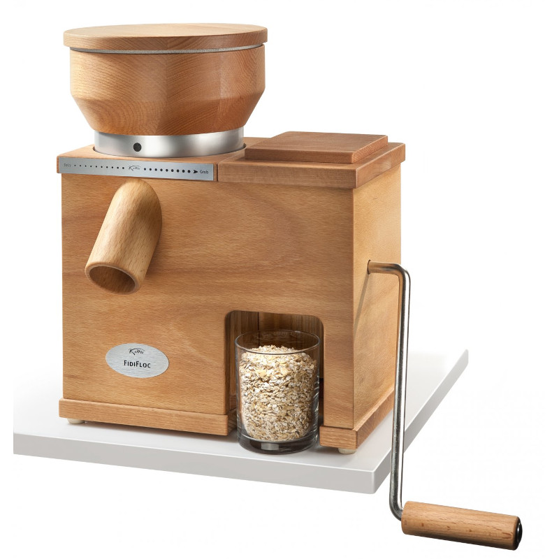 Młyn FidiFloc Medium skrupulatnie rozgniata wszystkie rodzaje zboża na idealnie płaskie płatki zbożowe, nie tracąc przy tym cennych składników odżywczych.
