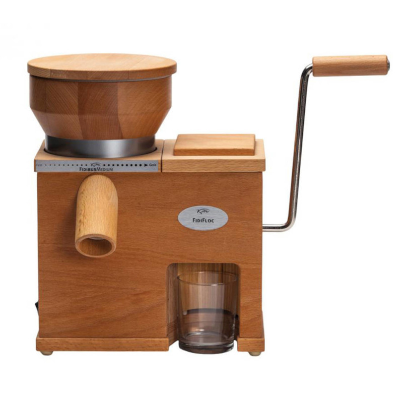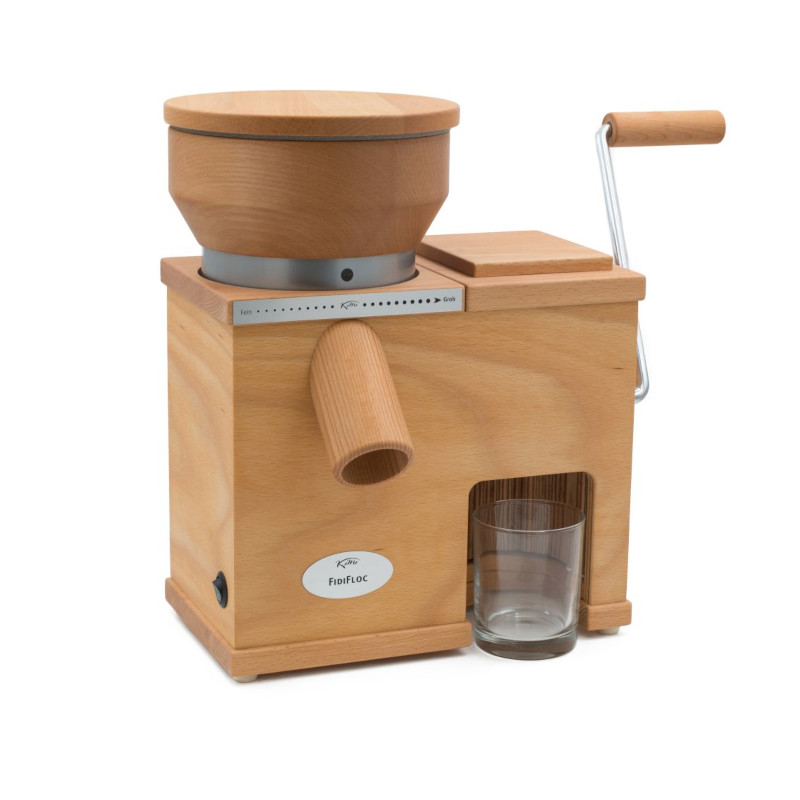 FidiFloc Medium to nie tylko połączenie dwóch znakomitych młynków firmy KoMo – Fidibus Medium i FlicFloc. To także połączenie dwóch różnych funkcji w jednym urządzeniu. Dzięki temu możesz cieszyć się świeżą mąką i aromatycznymi płatkami zbożowymi, a jednocześnie zaoszczędzić miejsce w swojej kuchni.