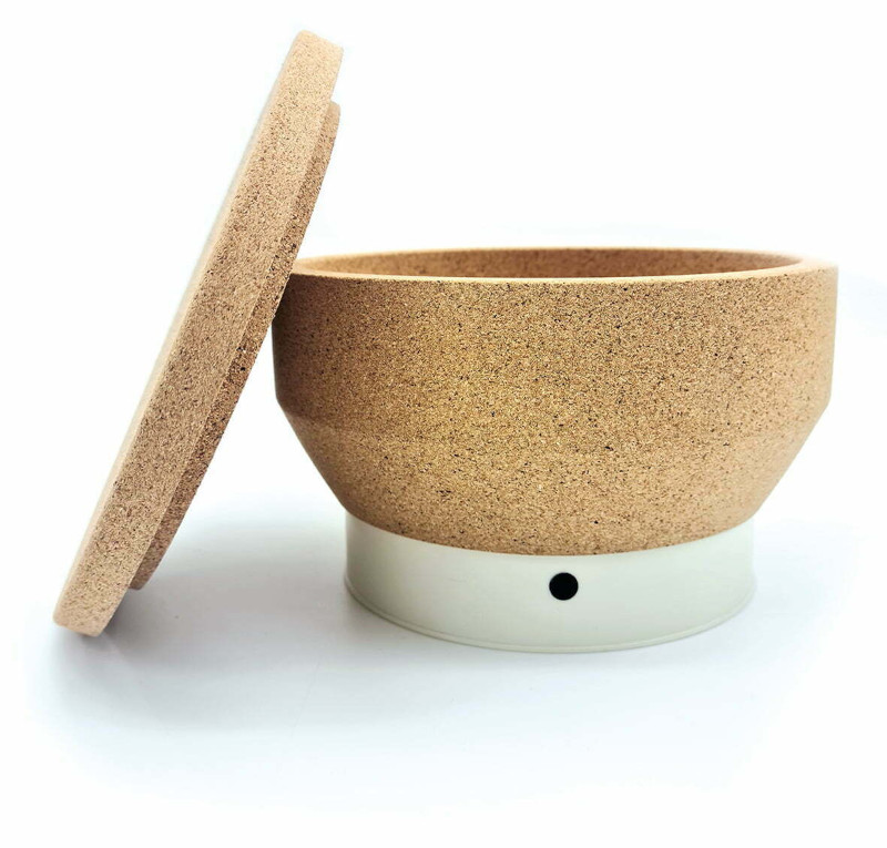 | Użyte materiały | Korpus: buk multiplex; Krawędzie narożne, podstawa obudowy wykonane z Arboblend®, misa zasypowa: korek naturalny |
