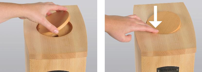 Po zdjęciu lejka, otwór polecamy zasłonić drewnianą zaślepką. Zabezpieczy to młynek przed dostaniem się zanieczyszczeń.