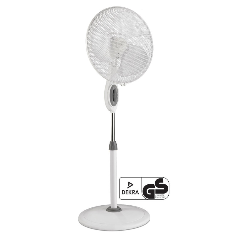Wentylator stojący wyposażony jest w system oscylacji, dzięki któremu powietrze równomiernie jest rozprowadzane po całym pomieszczeniu. Osłona łopat wiatraka sprawia, że użytkowanie jest bezpieczne.